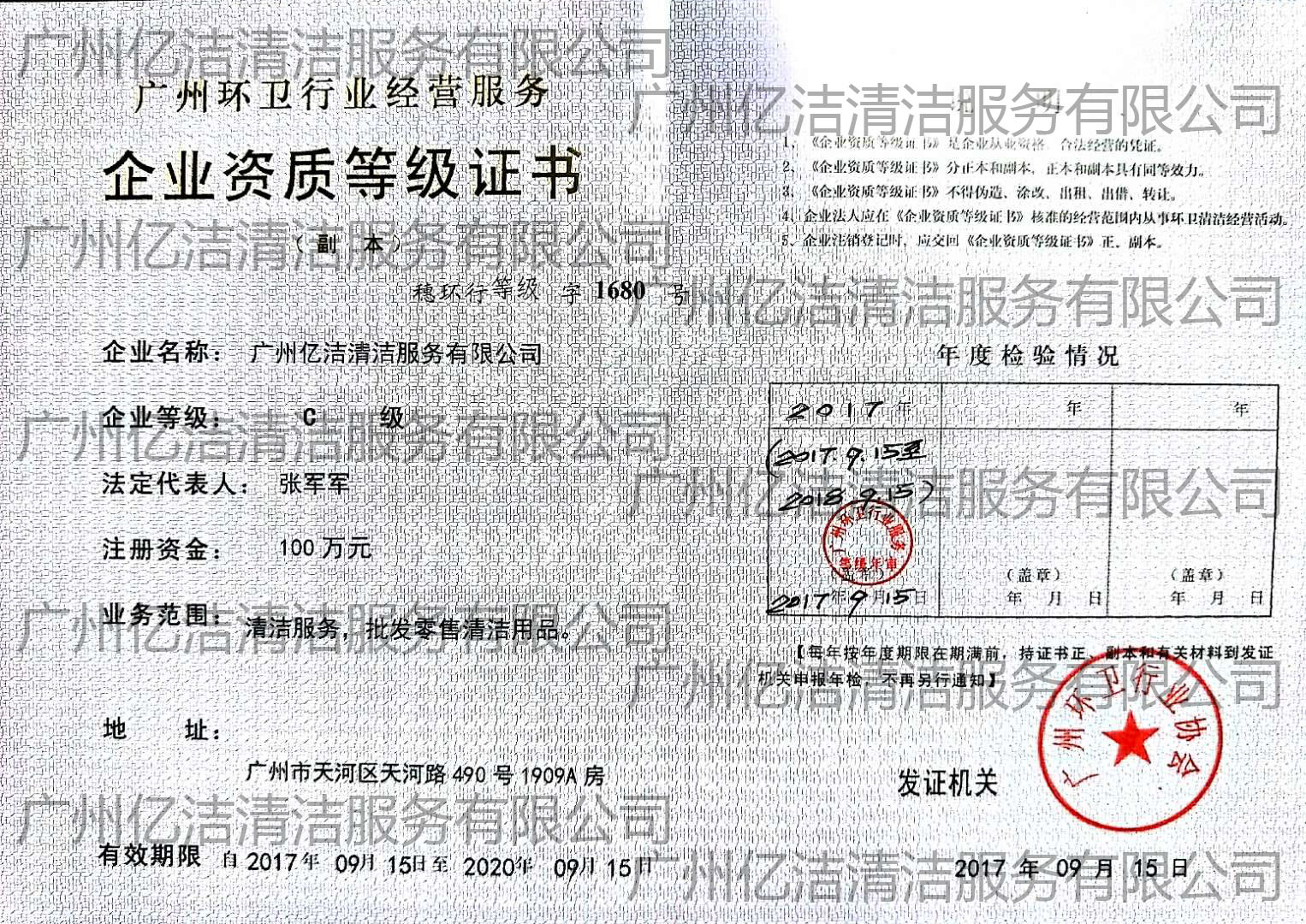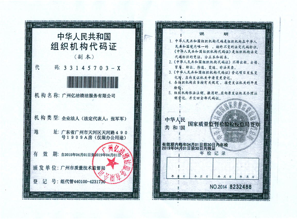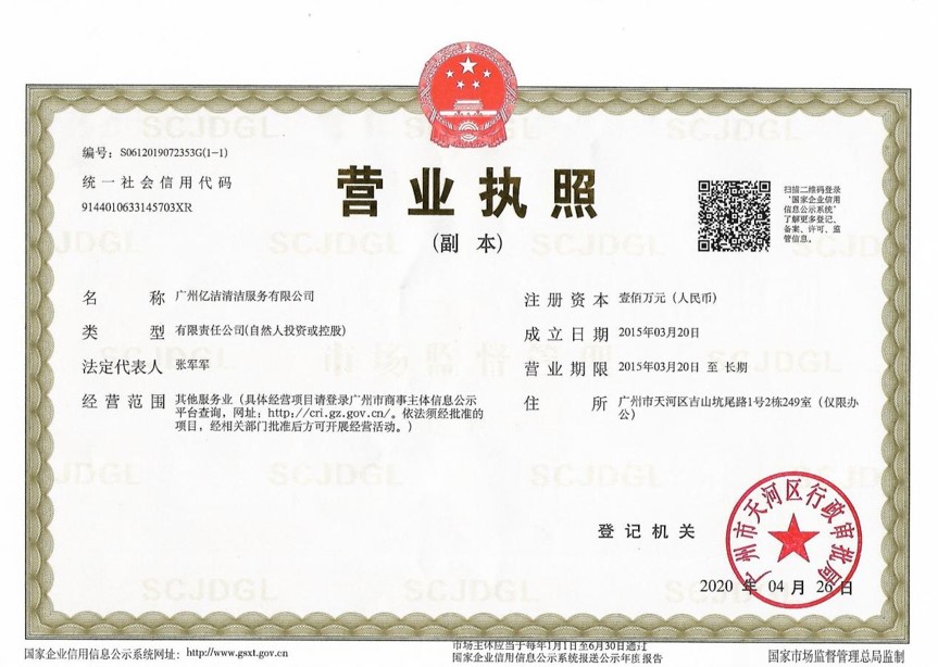 廣州億潔清潔服務有限公司是經(jīng)廣州市工商行政管理局批準成立的(注冊資本:100萬元人民幣)。具有獨立法人資質。公司成立2015年,公司具備完善的管理體系和高素質管理隊伍,擁有特種技術人員33名,保潔服務人員上萬名,覆蓋廣州市,能及時調配并快速投入高效運行。我們的每個員工都經(jīng)過公司的嚴格篩選,嚴格培訓,定期培訓后持證上崗以保證服務品質,保障客戶的權利,利益,形象等不受損失。 廣州億潔清潔公司是一家設備齊全,技術強大的綜合型清潔服務公司,為客戶提供完善服務尊定了堅定的基礎。 司于2010年全面推行了ISO9001質量管理體系認證和ISO14001國際環(huán)保體系認證。先后獲得廣州高層建筑外墻清洗維修作業(yè)【安全資質證書】、【廣州環(huán)衛(wèi)企業(yè)等級證書C級資質】、廣州疾控中心頒發(fā)的【四害消殺服務資質證】、【空氣治理A級資質】、中國石材協(xié)會頒發(fā)的【石材資質B級資質】等。 廣州億潔清潔服務有限公司致力于打造專業(yè)、實惠、靠譜的保潔服務公司,把專業(yè)的事情交給專業(yè)的我們,您放心! 億潔清潔服務項目: 廣州保潔服務:新建樓宇、別墅、酒店、醫(yī)院、辦公樓、賓館、企事業(yè)單位廠房竣工后開荒及裝修后精細保潔.工程保潔服務。 廣州物業(yè)托管:為廣州市各大企事業(yè)單位、賓館、政府機關、小區(qū)物業(yè)、酒店及廠房提供專業(yè)化保潔、園林、設施維護等管理服務。 廣州高空作業(yè):高空玻璃幕...[詳情]